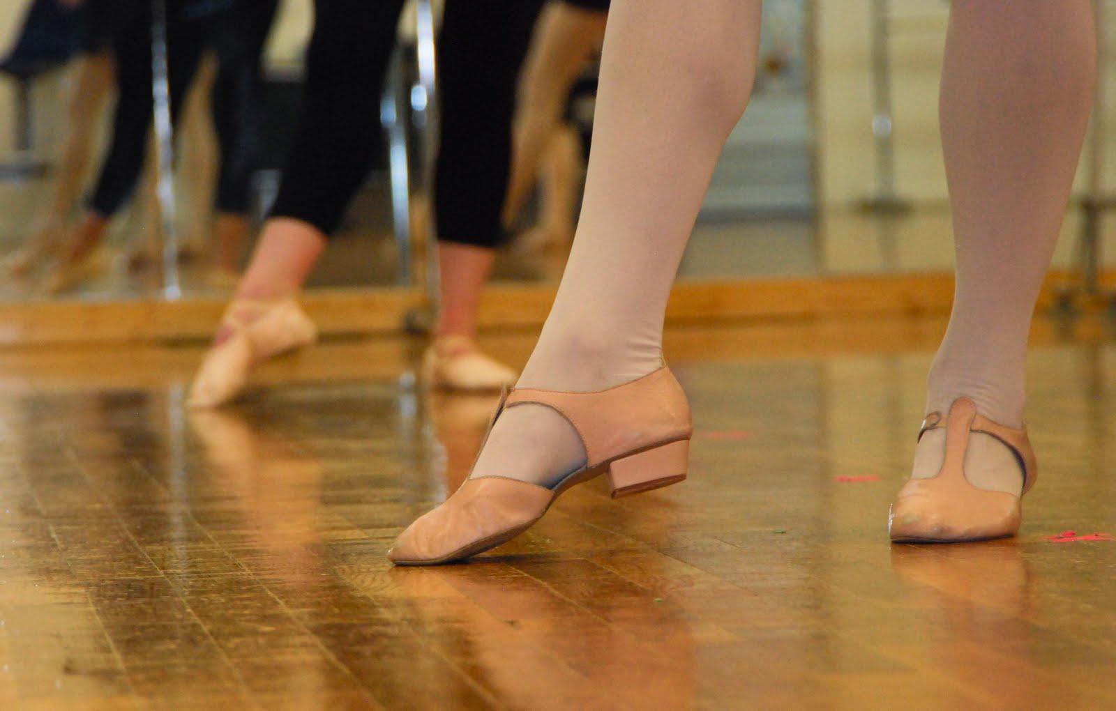 Above: Theda Assiff-MacGriff's worn shoes touch the floor of The Studio in East Lansing, Michigan. MacGriff has taught a variety of dance types over the years. "I taught tap, ballet, jazz, and ballroom, especially junior ballroom dance. I really learned those from my dance teacher growing up. Every summer I would go to New York and take master classes. Some were instructive classes so I learned how to teach," she says.